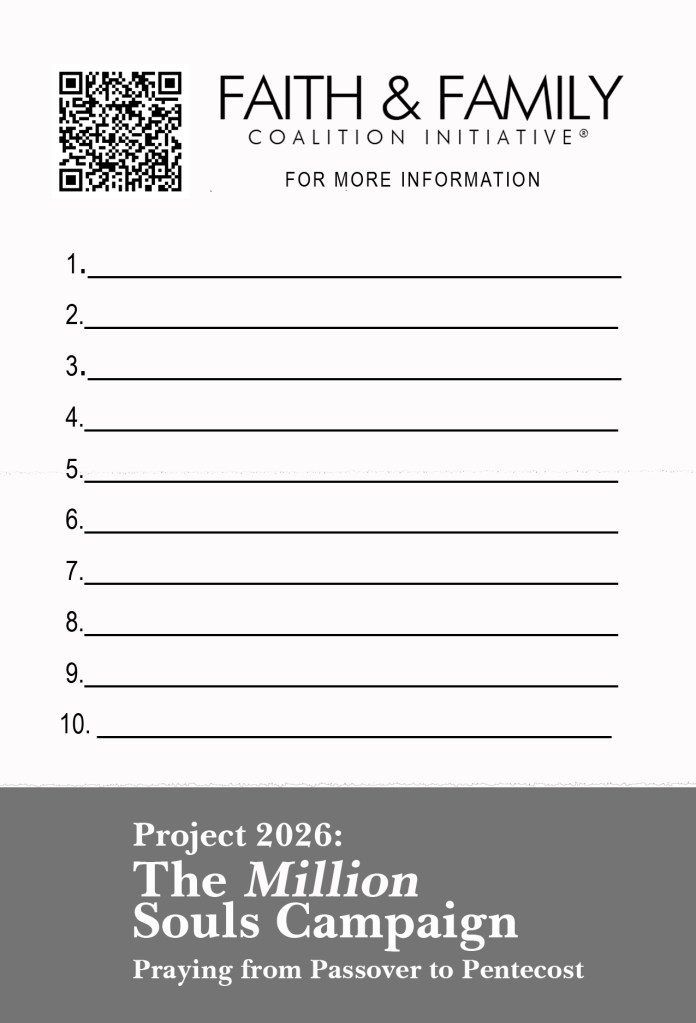 Operation Andrew Booklets: Prayer at the Heart is using the Operation Andrew model utilized by the Billy Graham Evangelistic Association to identify those who are relationally near to us to need to know Christ more fully. This method is essential to the success of Project 2026.